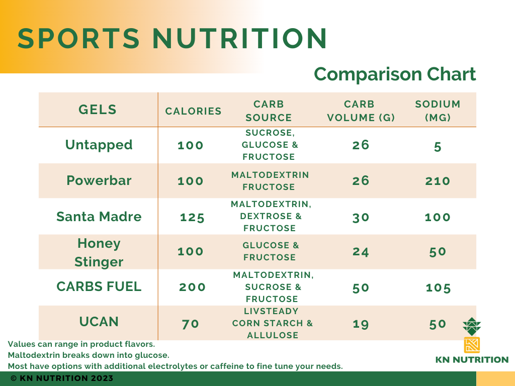 This is a resource guide comparing some of the most common gels on the market. Use this chart to compare and determine what is the best fit for your needs. If you still have questions, contact me and we can work together to optimize your performance!